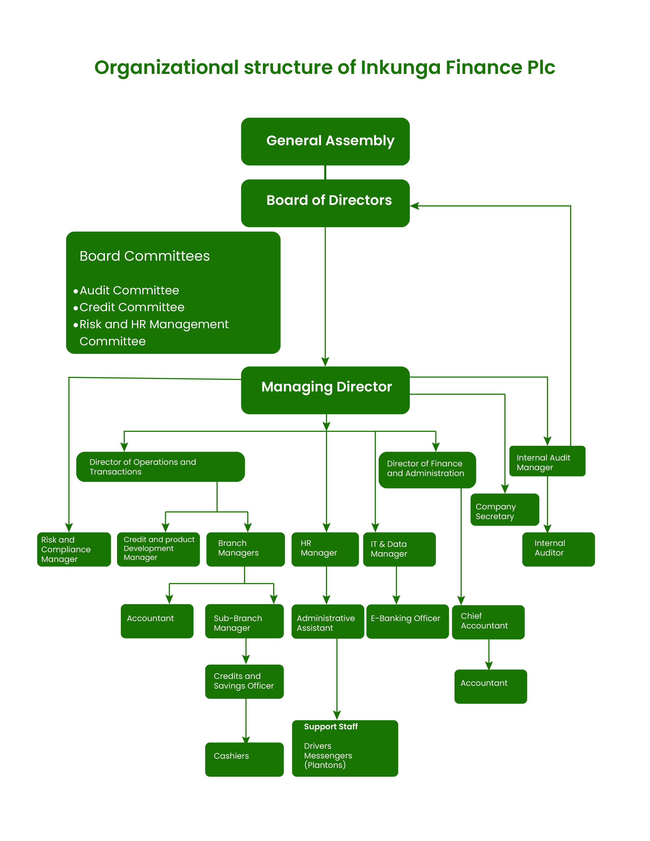 INKUNGA FINANCE Plc is the transformation of the Savings and Credit Cooperative, known as COOPEC INKUNGA, which was established through the merger of two cooperatives: COOPEC INKUNGA and COOPEC IMBONEZABUKUNGU. These cooperatives were initiated by the non-profit association AJEMAC (Association de Jeunesse en Matière Agricole et Culturelle) to promote financial services in rural areas and enhance socio-economic development in Rwandan communities.